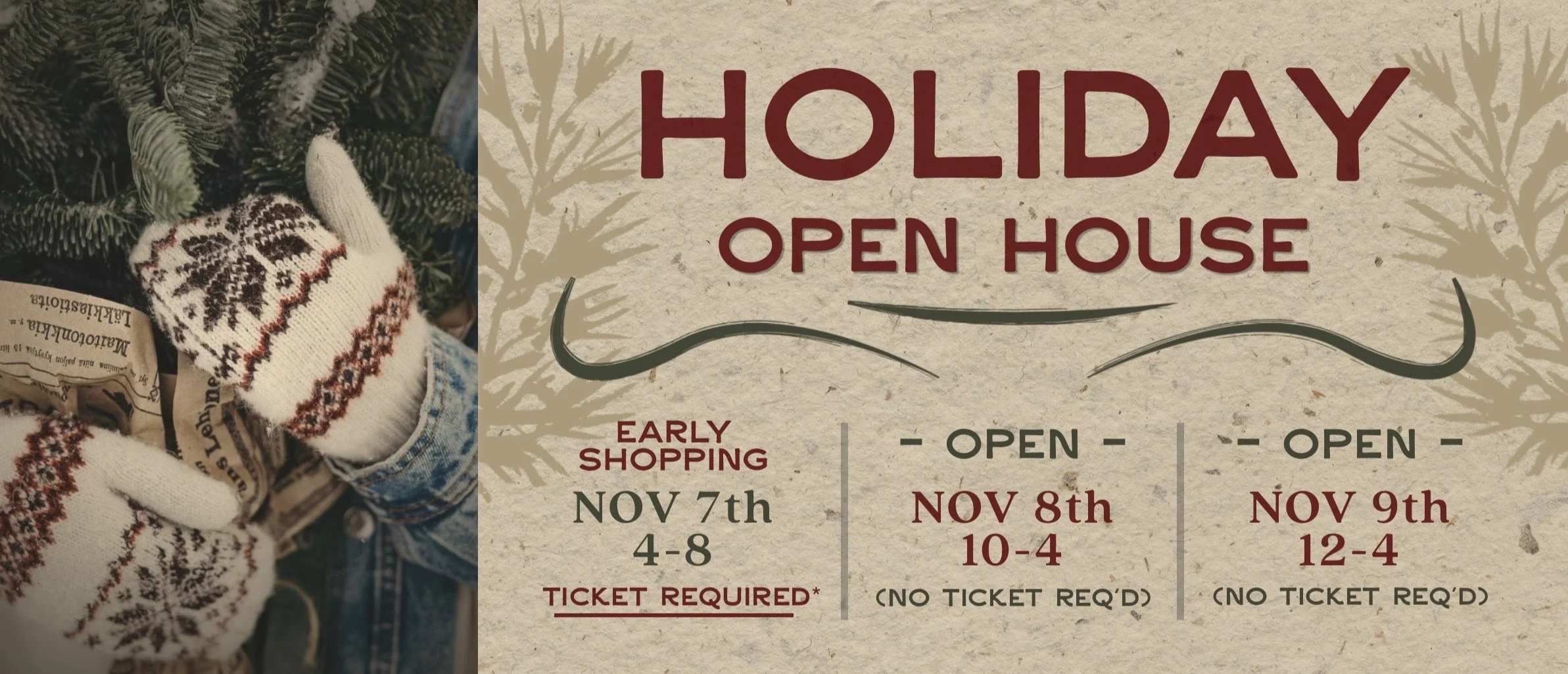 Join us for our Holiday Open House weekend! We will be decked out with festive holiday decor, thoughtful gifts, vintage wares, and handcrafted and artisan goods! All the fun and merry-making you look forward to and love!